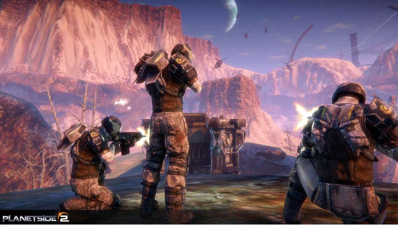 Planetside 2 will feature three factions you can choose; Terran Republic, New Conglomerate, Vanu Sovereignty. The game is going to be released in the next months but SOE has not announced a certain date. We will post more details on this when more information is available.